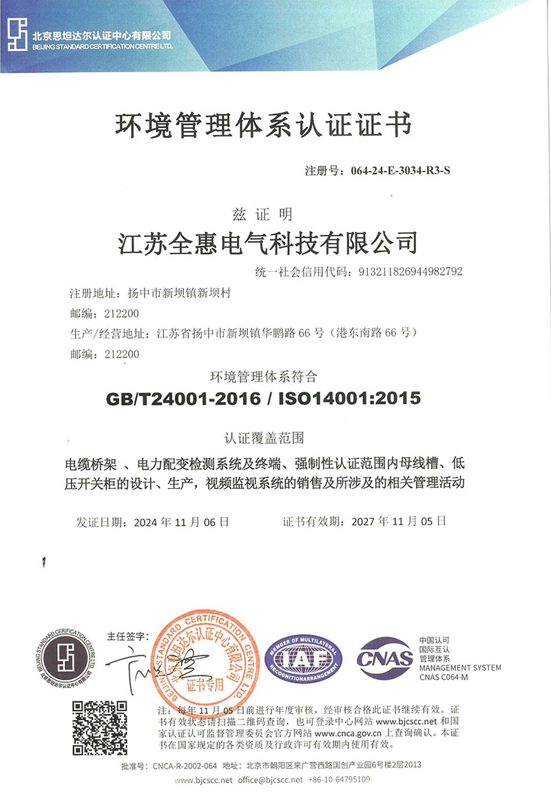 環(huán)境管理證書(中文)